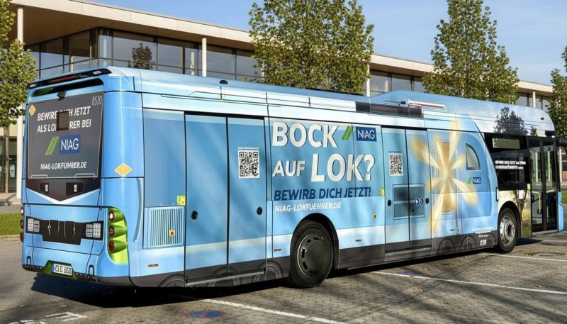 Die Niederrheinische Verkehrsbetriebe AG (NIAG) sucht Verstärkung und bringt ihre Recruiting-Kampagne auf die Straße: Vier auffällig gestaltete Busse sind seit Kurzem im Kreis Wesel und Kreis Kleve sowie im westlichen Duisburg unterwegs, die mit großflächigen Motiven auf die Berufschancen bei der NIAG hinweisen.